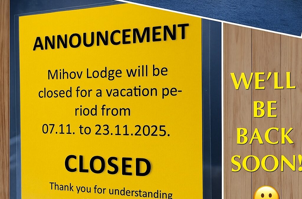 Mihov dom will be closed for annual leave from 7 November to 23 November Closed.